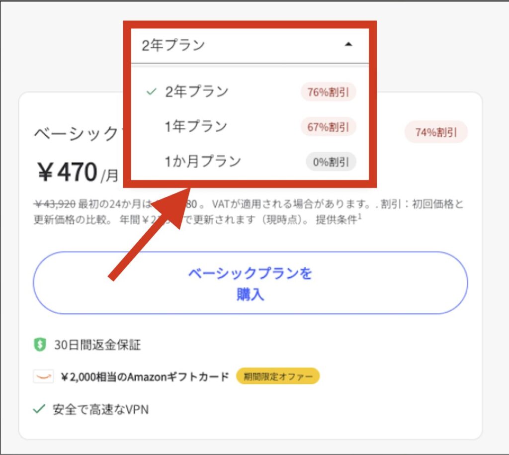 30日間返金保証があるので、最初から2年プランで契約してOKです。