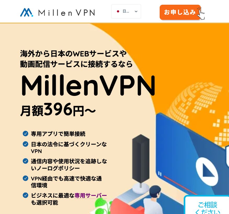 英語力に自身がない人は、MillenVPNがおすすめです。